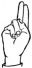 На ћирилици написано ВИОЛЕТА КЛЕМЕНОВИЋ састоји се из 17 слова [?]. Исписано ћириличном једноручном азбуком за глувонеме:
